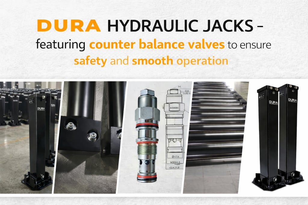 DURA Hydraulic Jacks are engineered for demanding trailer and industrial applications where structural strength, lifting stability, and operational safety are critical. Each jack is equipped with an integrated counterbalance valve system designed to enhance both safety and performance.