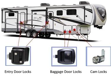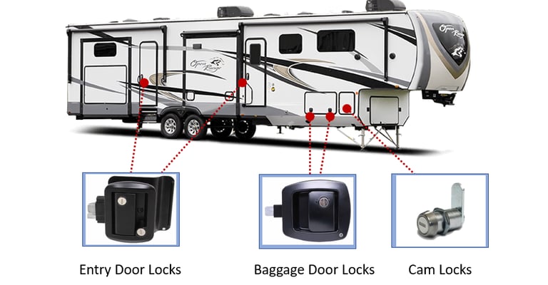 Our system uses one key for all the locks of your RV, including Entry Doors, Baggage doors, Cam locks and moreO
