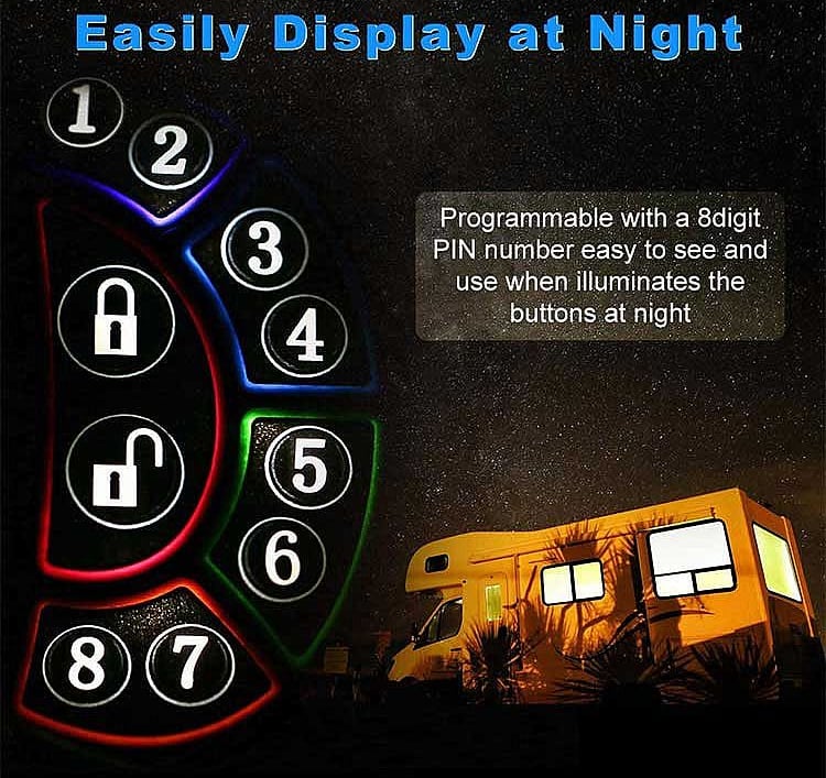 5 different methods to unlock doors including key fobs, IC cards, and mechanical keys. Fits all RV types